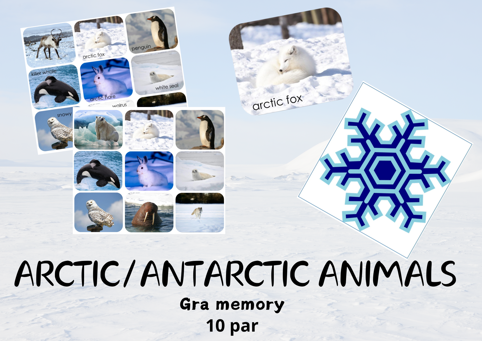 Gra Memory ze zwierzętami Arktyki i Antarktydy.